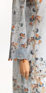 A hint of vibrant florals in this beautiful outfit makes it a must-have for the season. Styled with a flowing chiffon dupatta and dyed trouser, it is ideal for weekend lunches or friendly meetups.
